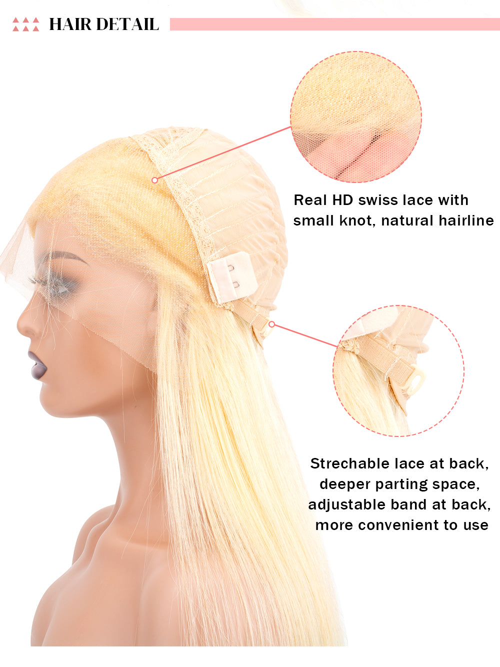 ※Item: Msmerry 100% High Quality Virgin Human Hair Straight Wave 13*4 Swiss Lace 613 Wigs 180% Density