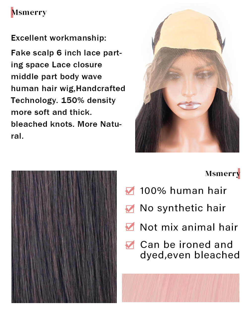 ※Item: Msmerry Fake Scalp Human Hair 13*6 Lace Frontal Wig 150% Density Pre-Plucked with Baby Hair