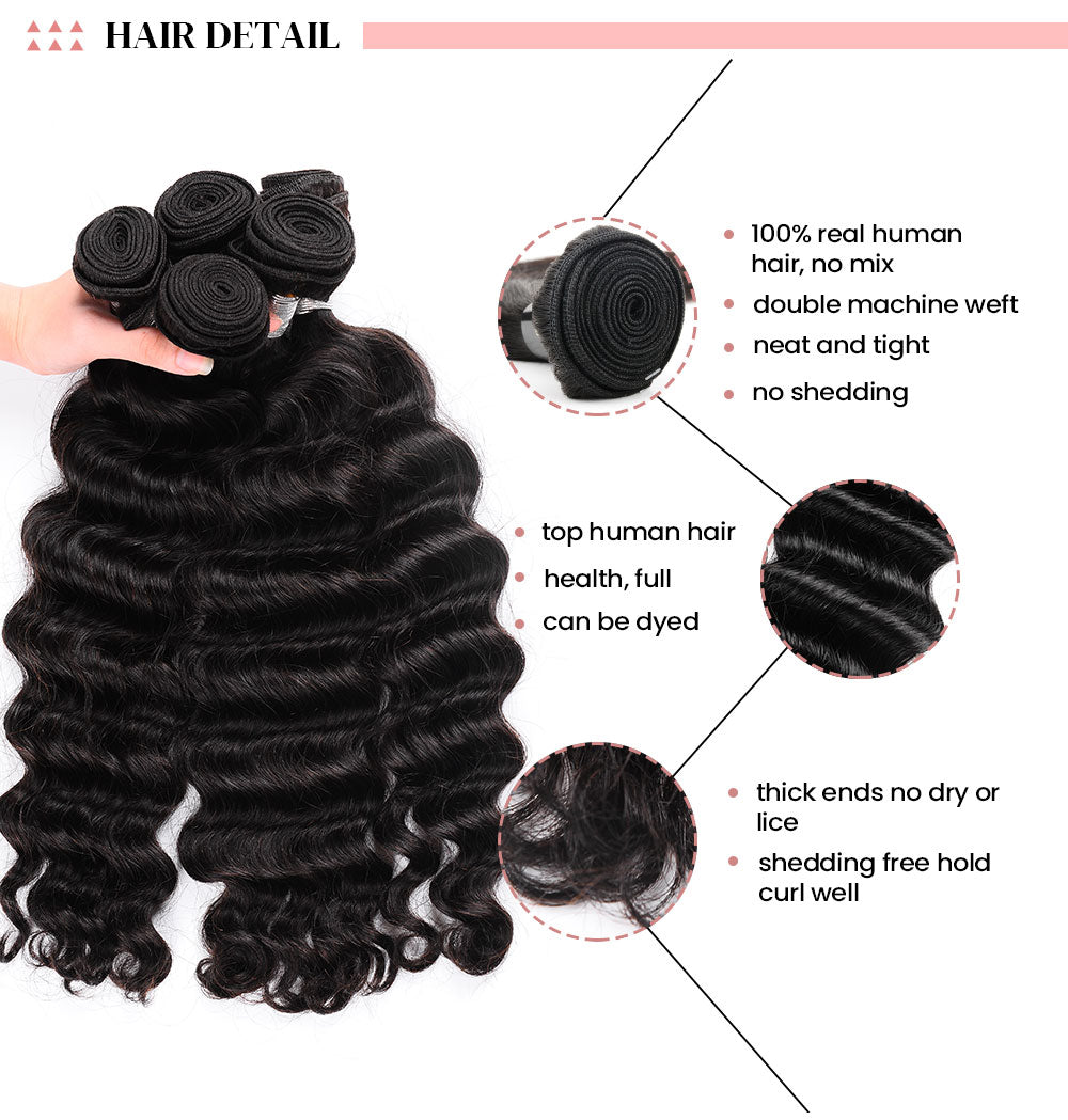 ※Item: Msmerry Hair Virgin Loose Deep Wave Human Hair Weave 3 Bundle 12A