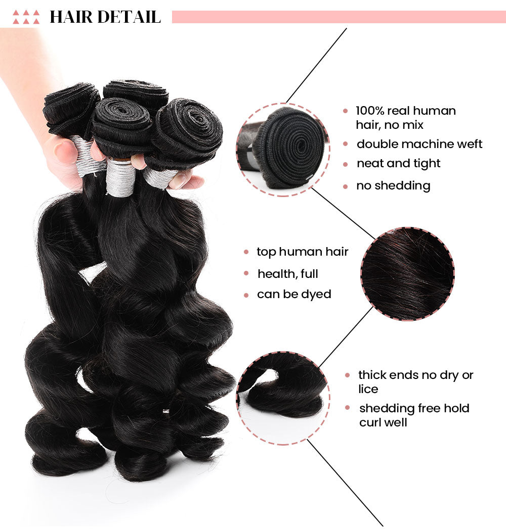 ※Item: Msmerry Hair Virgin Single Loose Wave Human Hair Weave 3 Bundle 12A