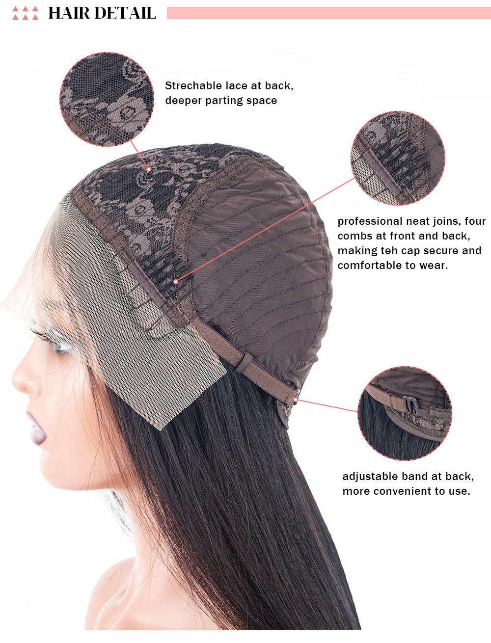 ※Hair Material: 100% Virgin Human Hair Wig, Virgin Straight Wave Hair, Can be Dyed and Ironed by your favor