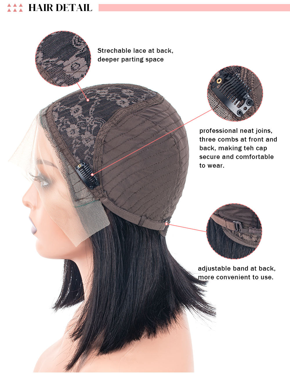 ※Item: Msmerry Straight Bob Wig Lace Front Wigs Pre Plucked Brazilian Hair T Shape Middle Part Straight Human Hair Wigs for Black Women