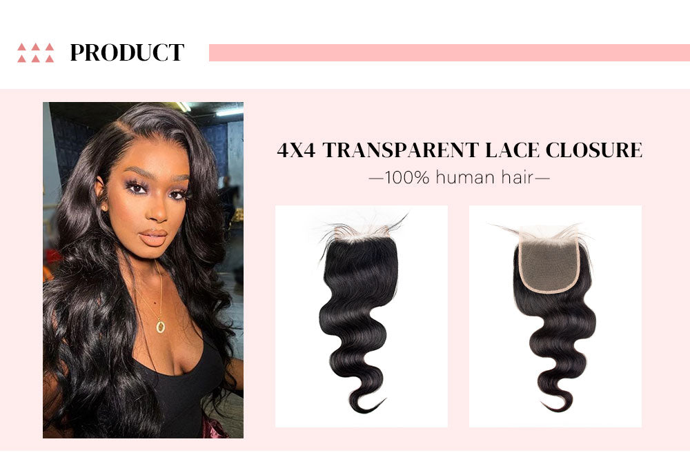 ※Item: Msmerry Swiss Transparent Lace Body Wave 4*4 Natural Black Hair Closure