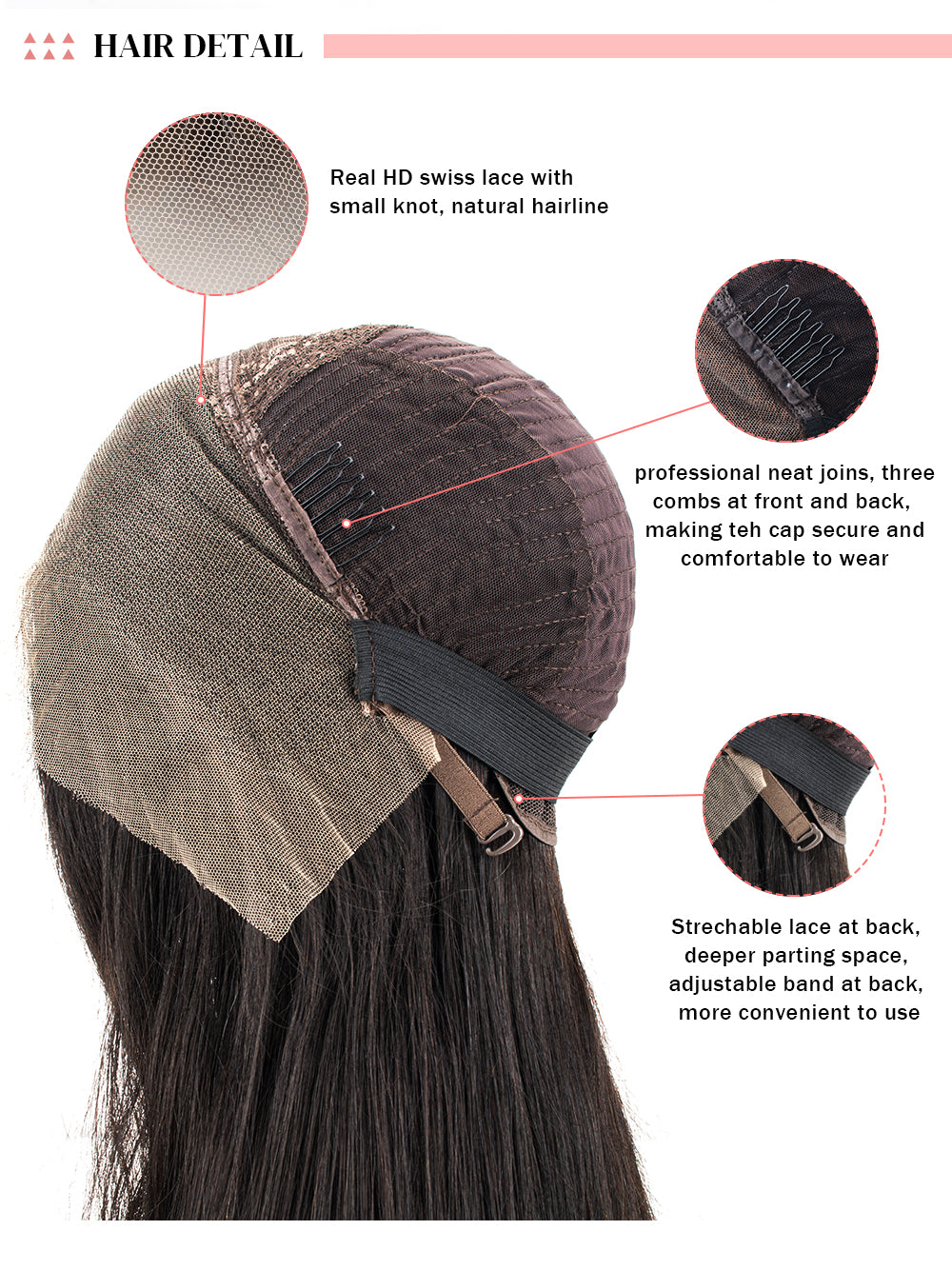 ※Hair Material: 100% Virgin Human Hair Wig, Virgin Straight Wave Hair, Can be Dyed and Ironed by your favor